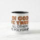 En Dios confiamos. ¡Todos Los Demás Que Polígrafo! Parodia divertida e irónica del lema estadounidense.