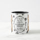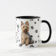 Un adorable Perro Terrier Australiano se sienta en dos lados de esta taza. El texto entre las dos imágenes dice "En el octavo día, Dios creó el TERRITORIO AUSTRALIANO y lo llamó MUY BUENO". Las imágenes del perro y el banner ovalado blanco que contiene los campos de texto se colocan sobre un fondo blanco con huellas de pata negra.