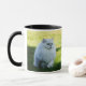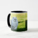 El gatito blanco hermoso le ayudará a conseguir que va con su café de la mañana.