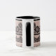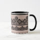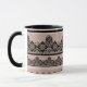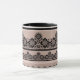 Taza encaje negro, calado, fondo marrón, beige, bla