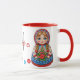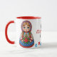 Celebra la individualidad y añade un toque de fantasía y personalización a tu día con nuestros "Encantadores Matryoshkas con Mug Touch Personalizado". Con dos hermosas muñecas rusas de Matryoshka, este diseño muestra vibrantes puntos de polka azules y rojos, acentuados por una paleta clásica de colores rojo, blanco y azul. Cada muñeca está personalizada de forma única con la inicial de su elección, y su nombre o texto. Esta taza es un regalo perfecto o una deliciosa adición a su propia colección, combinando el encanto cultural con un toque personal.
