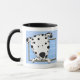 ¡Nuestra taza dálmata linda tiene el perro manchado famoso dibujado como dibujo animado! Su cabeza está levemente en ángulo mientras que él mira hacia fuera curiosamente. El fondo del marco es azul rayado. Sus patas blancos y negros están al borde del marco. Los regalos dálmatas únicos que ofrecen su perro preferido crían. Este diseño está disponible en la otra mercancía del amante del perro también.