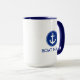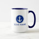Azul personalizado ancla azul y blanca náutica de la taza del nombre del barco