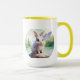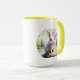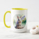 Esta es una taza con un conejo lindo sentada sobre ella. Que tengan un día feliz