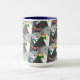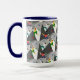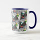 Esta taza cubierta con temática de escalada en roca presenta pequeños escaladores escalando los lados de la taza.