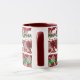 Esta taza festiva de dos tonos puede ponerte de humor con su mezcla de animales, copos de nieve y saludos navideños en rojo, verde y rojo profundo con acentos blancos, sobre una taza blanca. El interior se muestra en rojo profundo con mango rojo profundo. Personalizar a su gusto o compra como se muestra. Imagen de stock www.freepik.com
