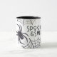 Moderna Halloween Spooky Spider Mug con delicadas telarañas negras. Personalizar o personalización cambiando el texto. Vea la coordinación de los tratamientos de personalizable así como las tarjetas de felicitación en nuestra tienda.