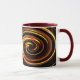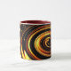 Espiral de oro intenso, amarillo, rojo cobre sobre fondo negro.