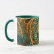 Diseño profundo abstracto y minucioso con un ojo central prominente y rodeado de espirales verdes con marcos dorados y resaltados. Elaborado con algoritmos generativos y Photoshop. Este es otro diseño original de Hámster de Amueblado.