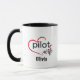 Esposa piloto, corazón y avión, simple taza moderna Muestra tu amor y orgullo con nuestra sencilla y moderna taza, con un encantador diseño cardíaco rodeado de las palabras "Esposa piloto", con un pequeño avión rojo al final del "piloto" y un corazón rojo juguetón en la letra "i", al final del ilustracion se sienta una opción de personalizable para un nombre — ¡perfecto para cualquier cónyuge amante de la aviación! ¡Echa un vistazo a la taza para el marido! Derechos De Autor En Diseño De Estilo LLC.