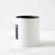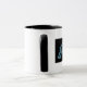 Dibujo de una pantera negra, resumido en azul en una taza blanca y negra