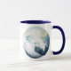 Nuestro impresionante Mug de Esquí en Polvo de montaña cuesta abajo muestra a un esquiador escalando y volando a través de una nube de nieve en polvo.