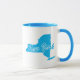 Muestra el orgullo de tu estado natal con estas camisetas y otros artículos que tienen un contorno azul del estado de Nueva York con el nombre dentro de la forma.