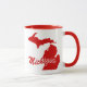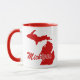 Muestra el orgullo de tu estado natal con estas camisetas y otros artículos que tienen un contorno rojo del estado de Michigan con el nombre dentro de la forma.