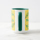 Este bonito y moderno diseño de esténcil decorativo luce el estilo Art Decó/Art Nouveau de los años 20. En el centro, puedes añadir tu nombre y monograma dentro del círculo hecho de un motivo abstracto de pluma de pavo real. Los colores son verde, azul-verde verde azulado, naranja, marrón y rojo sobre un fondo dorado amarillo-naranja. Los colores del tipo de letra y el color de fondo pueden cambiarse a través de "Personalizar". El diseño aparece a ambos lados de la taza.