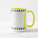 Personaliza este juego de palabras con estilo náutico para que se adapte a cualquier persona, para casa, cabaña, remolque o restaurante. El patrón de fondo es extraíble y se puede cambiar a cualquier color que elija. La franja de detalles del centro amarillo chillón puede cambiarse a cualquier color, así como las franjas azul marino. El texto en el lado izquierdo del diseño se puede cambiar a cualquier mensaje, para cualquier ocasión, con varios colores de taza para elegir y tamaño de taza. Una forma divertida y creativa de enviar un mensaje, ideal para la jubilación, o desear a alguien una pronta recuperación, o deseos de vacaciones.