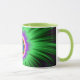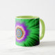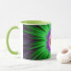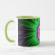 Una imagen fractal abstracta con un diseño explosivo de fuegos artificiales en verde, violeta y azul de Objowl. Además de las tazas, este diseño también está disponible en la mayoría de los demás productos. Si necesitas ayuda o quieres que haga cambios en este u otro elemento envíame un correo electrónico. objowl a gmail.com. No hay obligación, sólo con gusto, de estar al servicio.