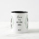 "LOVE MY KELPIE DOG" declares this mug for the proud Australian Kelpie owner. Each side of the mug has a beautiful portrait of a black and tan Kelpie framed by soft green watercolor eucalyptus leaves. Between the two images is the text, which may be easily customized, or even removed, by you, and your monogram or name.