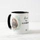 "LOVE MY BLOODHOUND" declares this mug for the proud Bloodhound dog owner. Each side of the mug has a beautiful portrait of a brown Bloodhound framed by soft green watercolor eucalyptus leaves. Between the two images is the text, which may be easily customized, or even removed by you, and your monogram or name.
