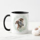 "LOVE MY BOXER DOG" declares this mug for the proud Boxer owner. Each side of the mug has a beautiful portrait of a brown and white Boxer framed by soft green watercolor eucalyptus leaves. Between the two images is the text, which may be easily customized, or even removed, by you, and your monogram or name.
