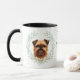 "LOVE MY BRUSSELS GRIFFON DOG" declares this mug for the Brussels Griffon dog owner. Each side of the mug has an adorable portrait of a little Brussels Griffon framed by soft green watercolor eucalyptus leaves. Between the two images is the text, which may be easily customized, or even removed by you, and your monogram or name.