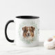 "LOVE MY AUSTRALIAN SHEPHERD DOG" declares this mug for the proud Aussie dog owner. Each side of the mug has a beautiful portrait of a red Australian Shepherd dog framed by soft green watercolor eucalyptus leaves. Between the two images is the text, which may be easily customized, or even removed by you, and your monogram or name.