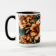 Taza Exquisitas y lujosas flores doradas, hojas en azul