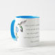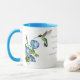 Un par de colibríes y las glorias matutinas azules granjean al dueño de esta taza. Hay una cita de fe y un lugar para poner tu nombre. Todo el texto es cambiable.