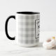 Una hermosa y rústica temática de dos tonos gran taza de café con su nombre familiar personalizado, casa de lago, cabaña de pescadores u otro texto deseado y su fecha establecida. Este diseño a medida presenta una tipografía de estilo rústico con obras de arte de un pez y de un remos de barco, y está enmarcado en una estampada de color blanco plateado con tonos grises suaves. Siéntase libre de visitar mi tienda de diseño para ver más artículos y diseños como este. ¡Gracias.
