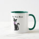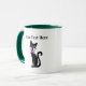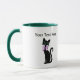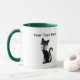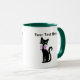 This coffee or tea mug has two fancy pretty black cats wearing pink bows around their necks with big green eyes. Customise your text with the templates.