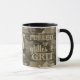 Start your day with sparkle and strength with this faux metallic coffee cup. Designed with a bold faux glitter camouflage pattern in shades of yellow and brown gold, accented with tans and beiges, this mug blends fierce energy with a touch of glam.