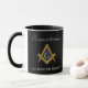 Negro, felicitaciones, Maestro Mason, Freemason mug. Plaza masónica y jarra de brújula. Por favor, personalícelo con su propio texto o elimínelo a mano y escriba sus propias palabras.