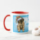 Celebra las vacaciones con adorables cachorros Leonberger con gorras de reabastecimiento a rayas entre copos de nieve y las palabras: ¡Feliz Día de Amanecer! Excelente idea de regalo de vacaciones para la familia y amigos amantes de Leo.