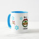 Taza Feliz cumpleaños navideño, corona, campanas y copo