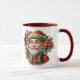 La imagen caricaturizada muestra al elfo jovial de Santa, el epítome de las celebraciones. El elfo está vestido con un atuendo tradicional, con una túnica verde brillante. Su gorra es un rojo vibrante, volando a un lado con una esponjosa pompa blanca al final. Sus oídos están apuntados, mirando hacia afuera desde debajo de su gorra, y sus mejillas rosadas y su amplia sonrisa le añaden ánimo a su alegre comportamiento. Sus ojos brillan de milagro, reflejando la alegría de la temporada de fiestas. Detrás de él, la vegetación de los Navidades está bellamente representada. La imagen resume perfectamente el espíritu de los Navidades, combinando la alegría y la alegría del elfo de Santa con la belleza tranquila de un maravilloso país invernal.