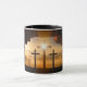 Feliz Pascua, se levanta el café de tres cruces de vacaciones Mug Elegante diseño moderno—Cruz iluminada en el calvario. ¡¡¡Jesús ha salido de la tumba y nuestro maravilloso Salvador vive!!! Semana Santa. ¡Hace un gran regalo!
