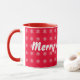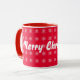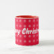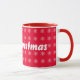 Feliz Navidad White Snowflakes con fondo rojo en una taza.