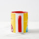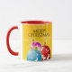 Navidades de tostadas y festividades de fin de año con esta taza festiva, que presenta el saludo "Feliz Navidad" en un cálido fondo amarillo con brillantes copos de nieve blancos y un trío de coloridos adornos navideños. Personalizar con el mensaje de su elección. Diseño © W.H. Sim. Ver más en zazzle.com/expressionsoccasions