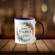 Taza Feliz Navidad Floral de flores y escritura azul de