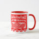Esta taza de Navidad muestra un cartel rojo de papel picado mexicano con la frase Feliz Navidad en el frente en blanco brillante. La parte trasera tiene el mismo diseño que la parte delantera.