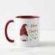 Tradicional taquilla de café de vacaciones al estilo rústico con "Feliz Navidad" y el año en el guión festivo de caligrafía roja y verde. Este divertido diseño, impreso a ambos lados de la taza, presenta un gnomo de jardín chica en su gorra rojo de vacaciones con un patrón de lata de dulces dorados. Perfecto para las vacaciones.