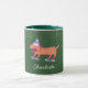 Taza Festive Dachshund Dog Ice Skating Green Name Mug