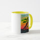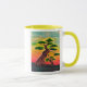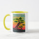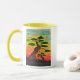 Una hermosa puesta de sol de coral resalta los baobabs que crecen en la colina. Los árboles están muy bien dibujados en el cielo de la noche. El gráfico se presenta muy bien en las tazas.