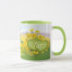 Flores amarillas recién hermosas rodeando dos corazones verdes flotando en una suave curva dorada del sol a través de esta singular taza fiesta de celebración del primer boda. Los nombres se pueden personalizar utilizando la plantilla proporcionada. Arte original y diseño de Anura Design Studio. Si quieres un año que no aparezca en mi tienda, por favor contáctame y te lo añadiré solamente por ti.