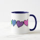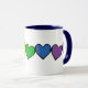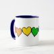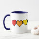 Este diseño presenta una hilera de corazones de color arcoiris.