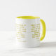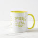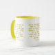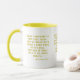 Esta taza de dos tonos presenta un tipo de letra de impresión color marrón con letras amarillas y contorno negro que muestra el versículo de la biblia "Philippians 1:6 KJV" sobre un fondo blanco. Este verso hace referencia al primer capítulo del Libro de Filipinas que muestra el sexto verso de esta escritura biblia, el tema de la cita de la Biblia del Rey James. La llanta y la manecilla están acristaladas con colores a juego disponibles en la construcción de cerámica de microondas y lavavajillas de 11 onzas o 15 onzas.