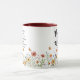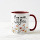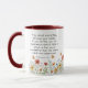 El tazón de café con las inspiradoras escrituras de citas representa un diseño de acuarela floral con flores silvestres y mariposas simples. Presenta una cita cristiana motivadora de Biblia Verse Philippians 4:6-7, "Reza más preocupación menos". Los versos están impresos en su totalidad en el lado izquierdo, "Reza por todo; dile a Dios tus necesidades... Si haces esto, experimentarás LA PAZ DE DIOS, que es mucho más maravillosa de lo que la mente humana puede entender".