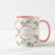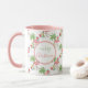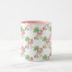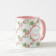 Taza de café de árbol de palma de sombrero azul de flamenco de Navidad rosa tropical.