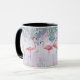 Color de agua rosada de la familia tropical Cute Flamingos. Un elegante flamenco rojo pintado. El flamingo está parado en el agua con un magnífico plumaje rojo. El fondo está decorado con bonitas acuarelas. Puede cambiar el color del texto y el estilo de letra utilizando la opción personalizar it más adelante