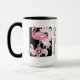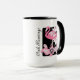 El diseño del producto presenta un flamingo con patrones de paisajes caleidoscópicos en tonos rosas. Este original ilustracion de pájaro tropical hace una taza de café de una chica linda y única con texto personalizado.
